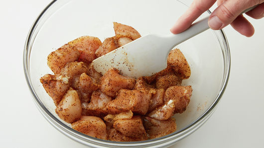 In medium bowl, mix 1 teaspoon of the cumin, 1 teaspoon of the chili powder, 1/2 teaspoon of the salt and the coriander. Add chicken; stir to coat.